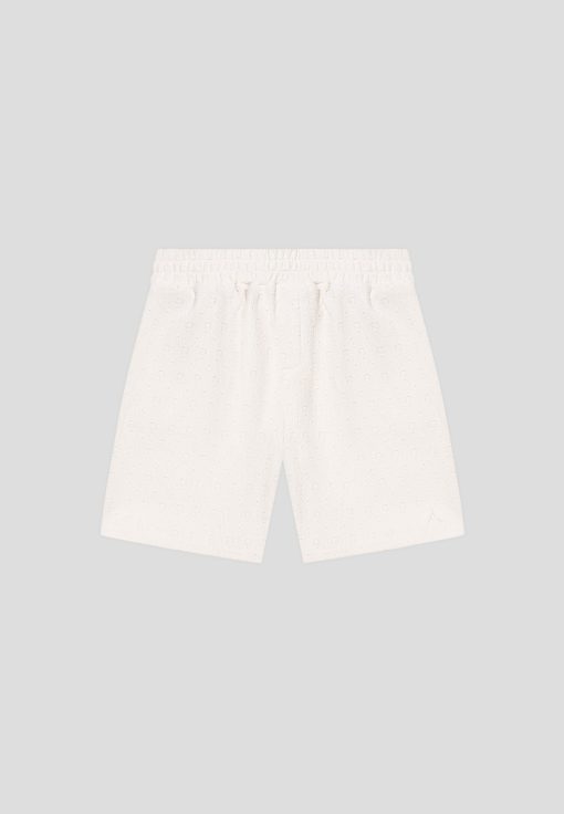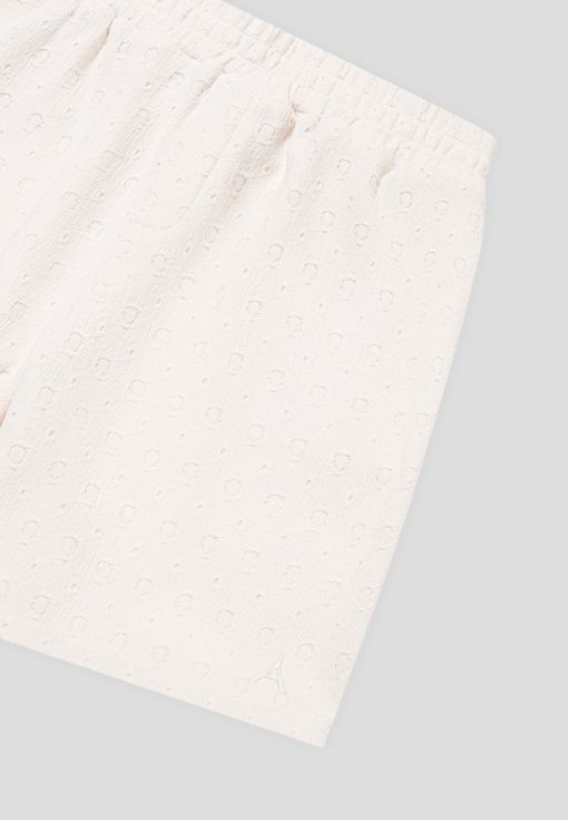 Crafted with a soft crochet knit fabric, our Textured Shorts offer a comfortable and breathable fit for all-day wear. Complete with an adjustable drawstring and an elasticated waistband, these shorts provide a snug and customised fit. In classic cream, these shorts are perfect for any casual occasion.