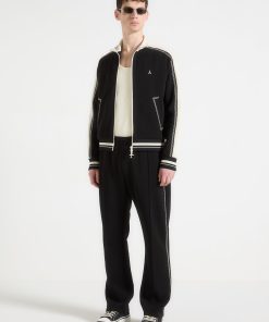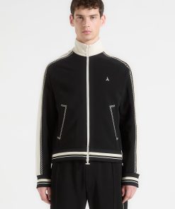 The Contrast Whipstitch Raglan Track Jacket combines athletic influence with precision craftsmanship. Defined by whipstitch contrast trims running across the shoulders and sleeves, the jacket features a raglan construction for enhanced movement and a streamlined fit. The high funnel neck, stripe ribbing, and sharp panelling elevate this from sportswear to standout statement.