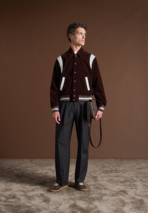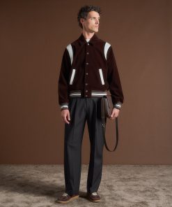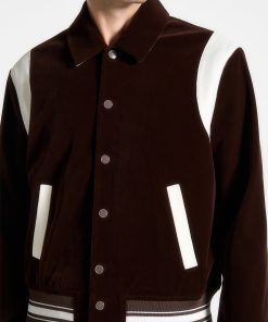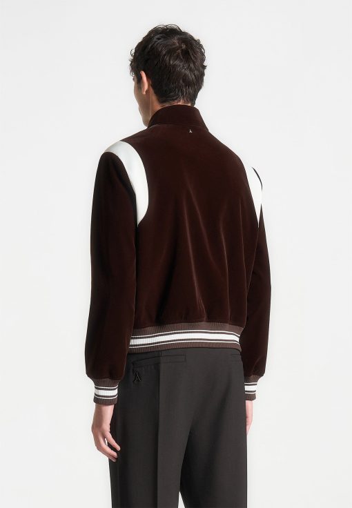 Introducing our Velvet & Satin Varsity Jacket in Brown. This jacket combines a classic retro silhouette with contemporary flair, featuring high quality fabrics and satin panelling. Finished with a practical, popper button closure, it offers the perfect blend of varsity style and functionality.