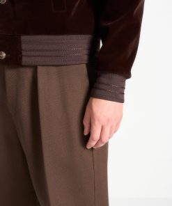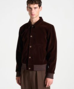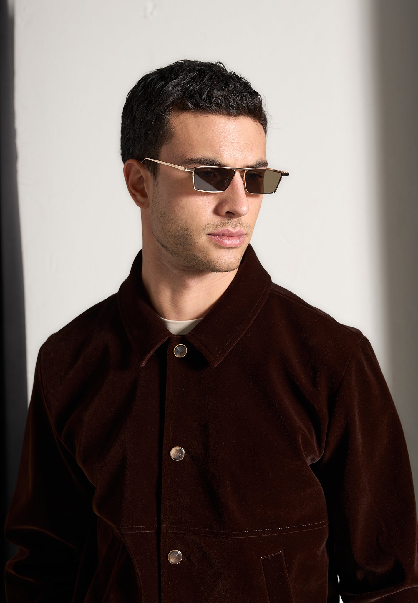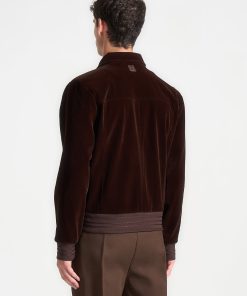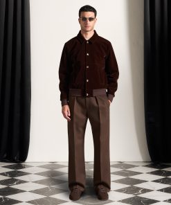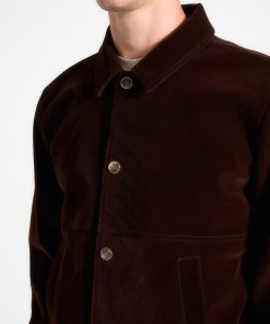 Elevate your wardrobe with the Velvet Trucker Jacket in Brown. Featuring a soft velvet finish, ribbed cuffs, and a button-up front, it blends a modern trucker silhouette with casual comfort. Complete with angled side pockets, this versatile piece is perfect for any occasion this season.