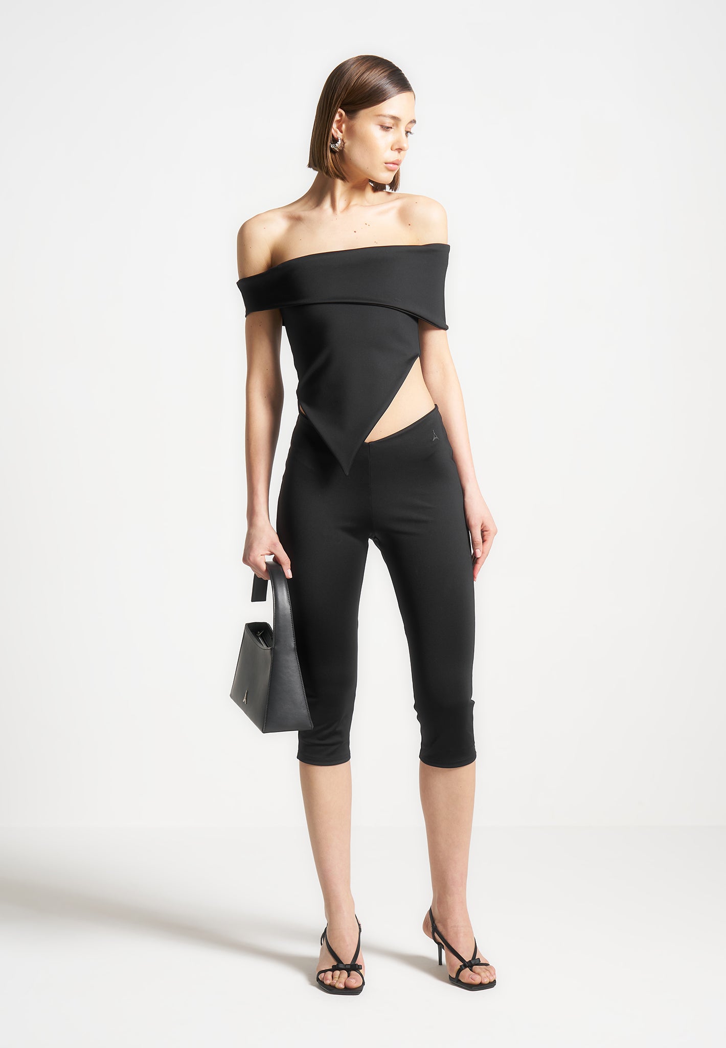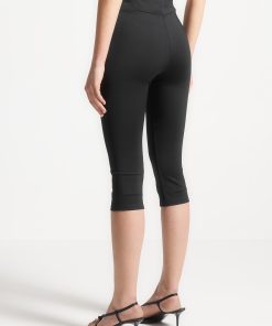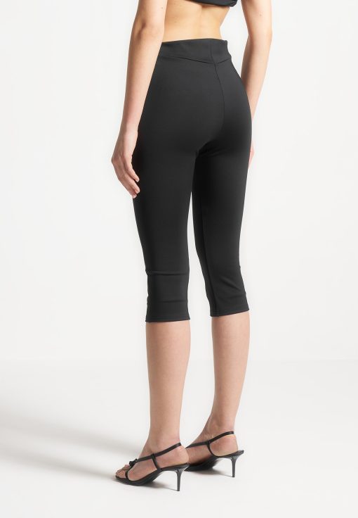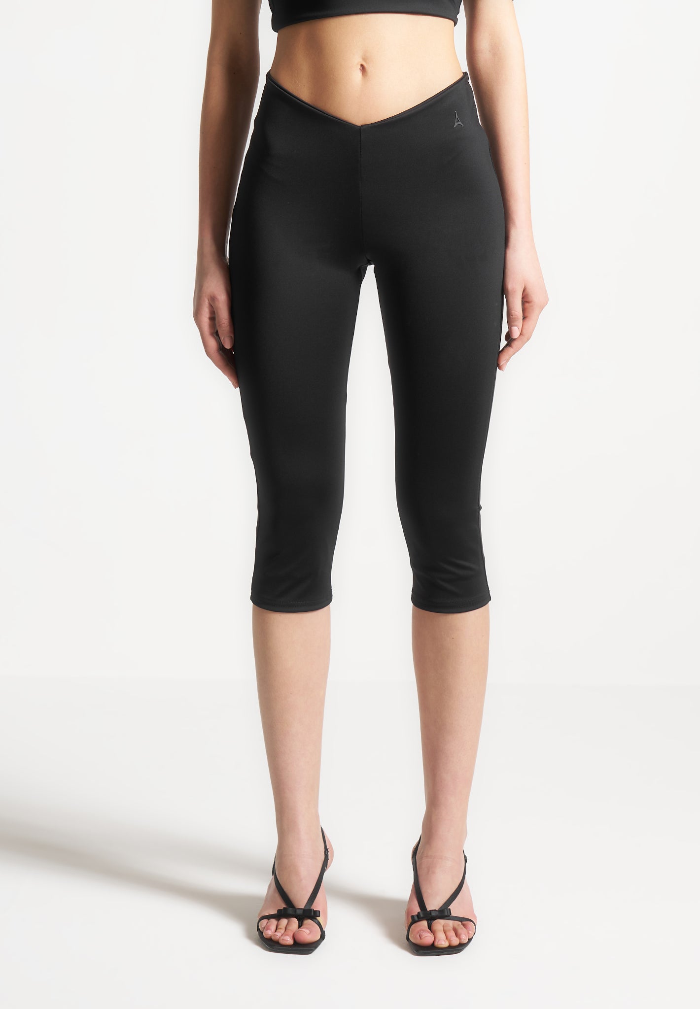 Expertly crafted for a flattering fit, these capri leggings feature an angled waist for added style. With a mid-length design, they offer both comfort and sophistication for any occasion. Experience the perfect combination of fashion and function.