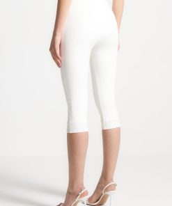 Expertly crafted for a flattering fit, these capri leggings feature an angled waist for added style. With a mid-length design, they offer both comfort and sophistication for any occasion. Experience the perfect combination of fashion and function.