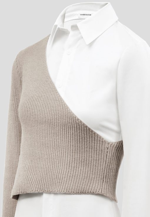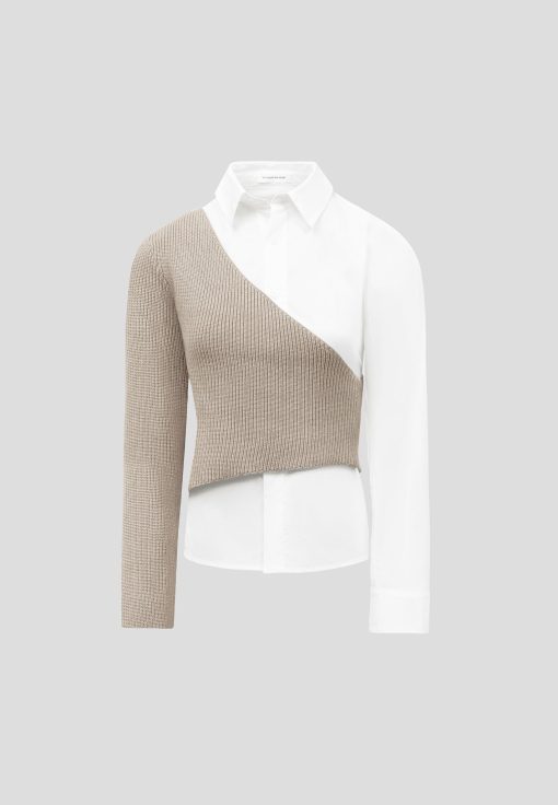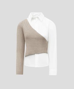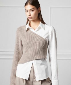 This unique Asymmetric Knitted Overlay Shirt is designed with different colour tones for a chic yet comfortable look. The detachable knitted overlay adds an extra level of versatility while still delivering a stylish statement. Perfect for any occasion.