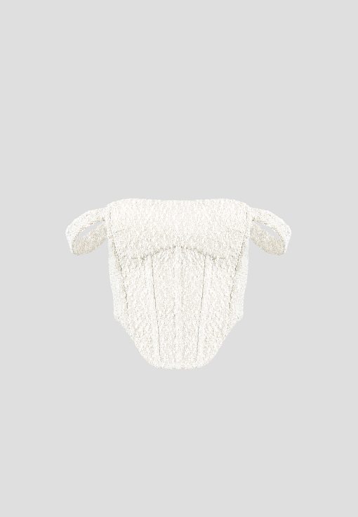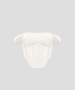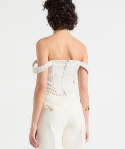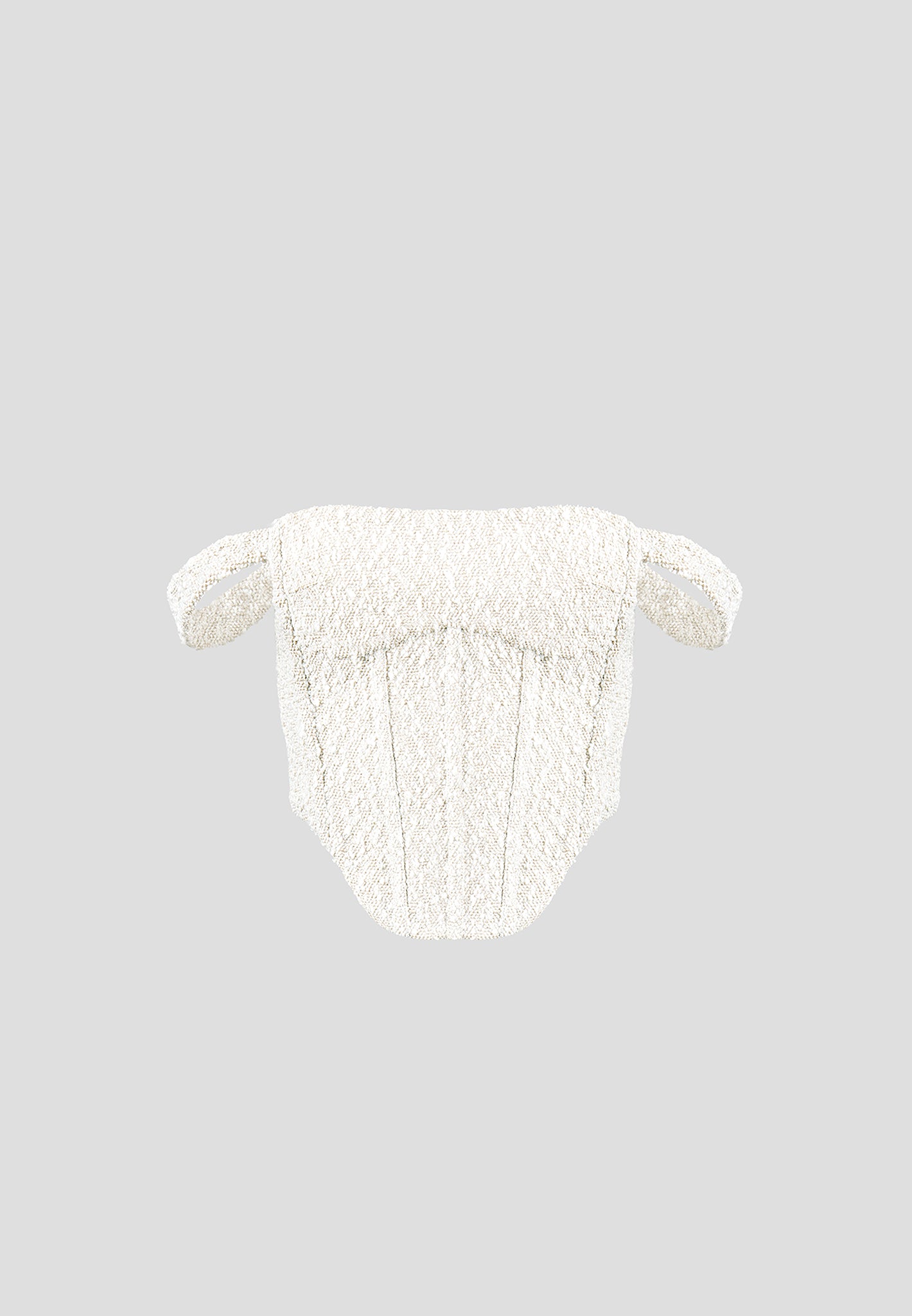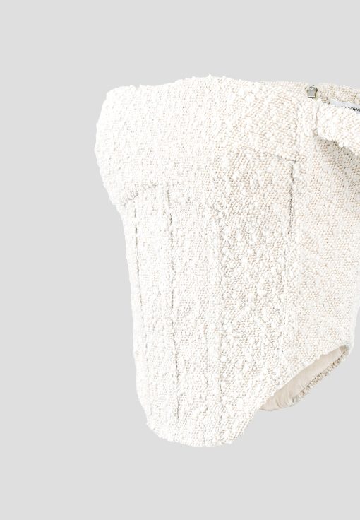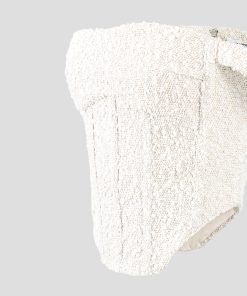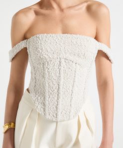 Crafted from high-quality boucle fabric, this Bardot corset top boasts an elegant dipped hem. With a sleek and sophisticated design, this top is perfect for any occasion. Upgrade your wardrobe with this versatile and stylish piece.