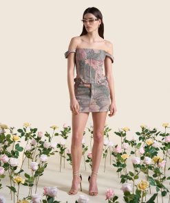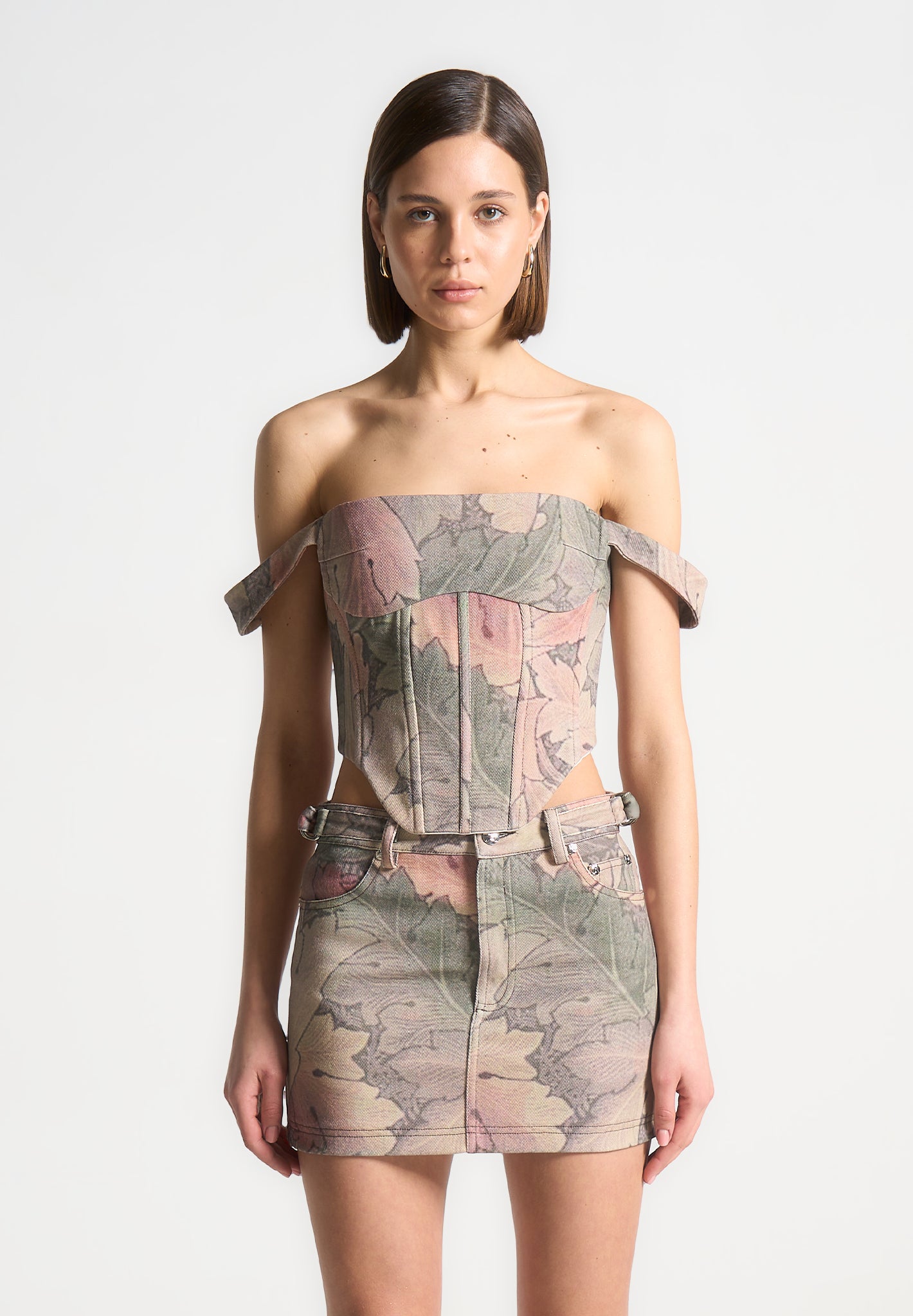Expertly designed for both style and comfort, our Renaissance Camo Bardot Corset Top boasts bust detailing and a structured fit. The dipped hem adds a touch of sophistication to this must-have piece, making it perfect for any occasion. Elevate your wardrobe with this fashion-forward top.
