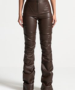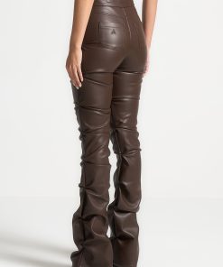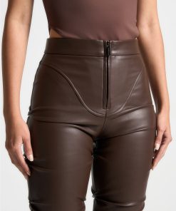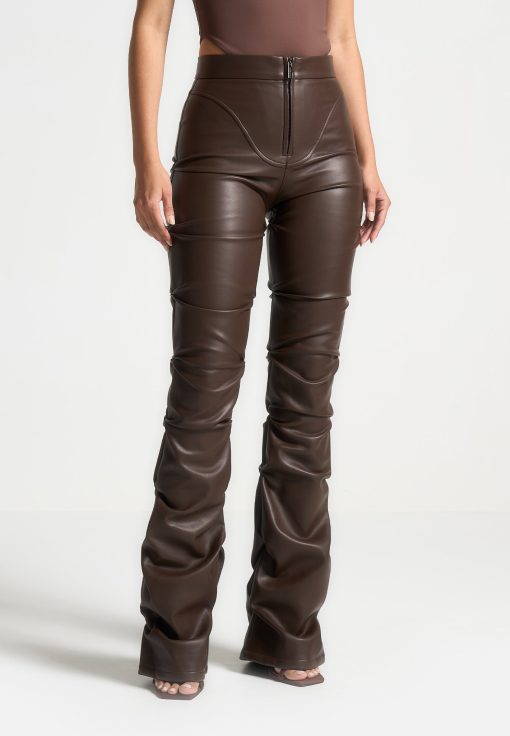 Introducing our classic Vegan Leather Flared Trousers. Featuring tacked detailing and a front functional zip, these trousers will elevate any outfit. Dress them up or down for any occasion. Made from high-quality vegan leather for a unique and ethically conscious look.