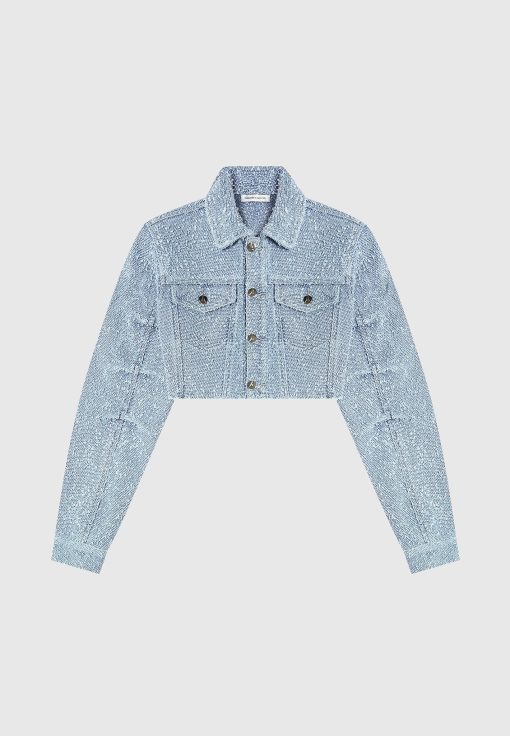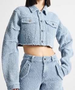 Combining comfort and modern style, this Cropped Boucle Denim Jacket is perfect for any fashionista! Its textured fabric provides dimension to any outfit, while its trendy design will keep you up-to-date with the latest fashion.