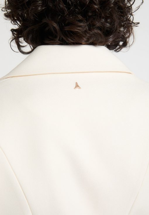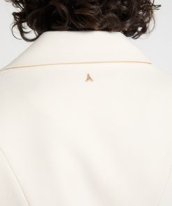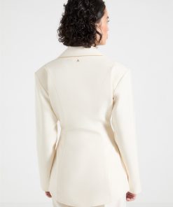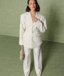 - The wide shoulder blazer silhouette creates a structured, tailored look