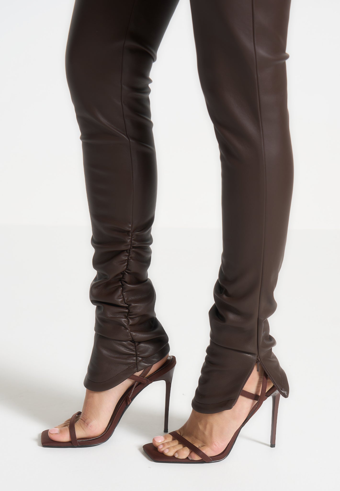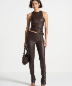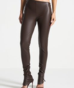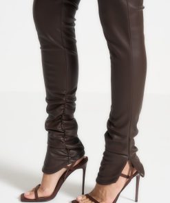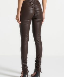 These leggings feature sophisticated gathered detailing and an eye-catching asymmetric waistband, creating a flattering silhouette. Perfect for any occasion, they effortlessly elevate your style while offering comfort.