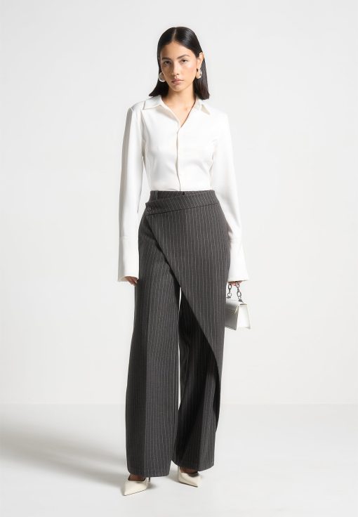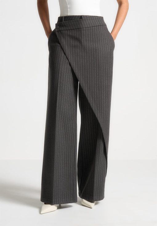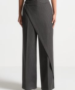 Manière De Voir Women’s Colette – Wool Pinstripe Wrap Tailored Trousers – Grey | Grey