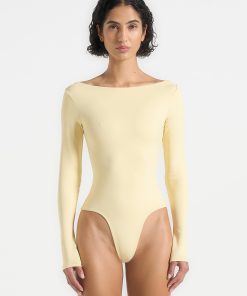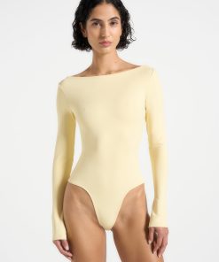 Manière De Voir Women’s Core Collection Éva – Boat Neck Bodysuit – Pale Yellow | Pale Yellow