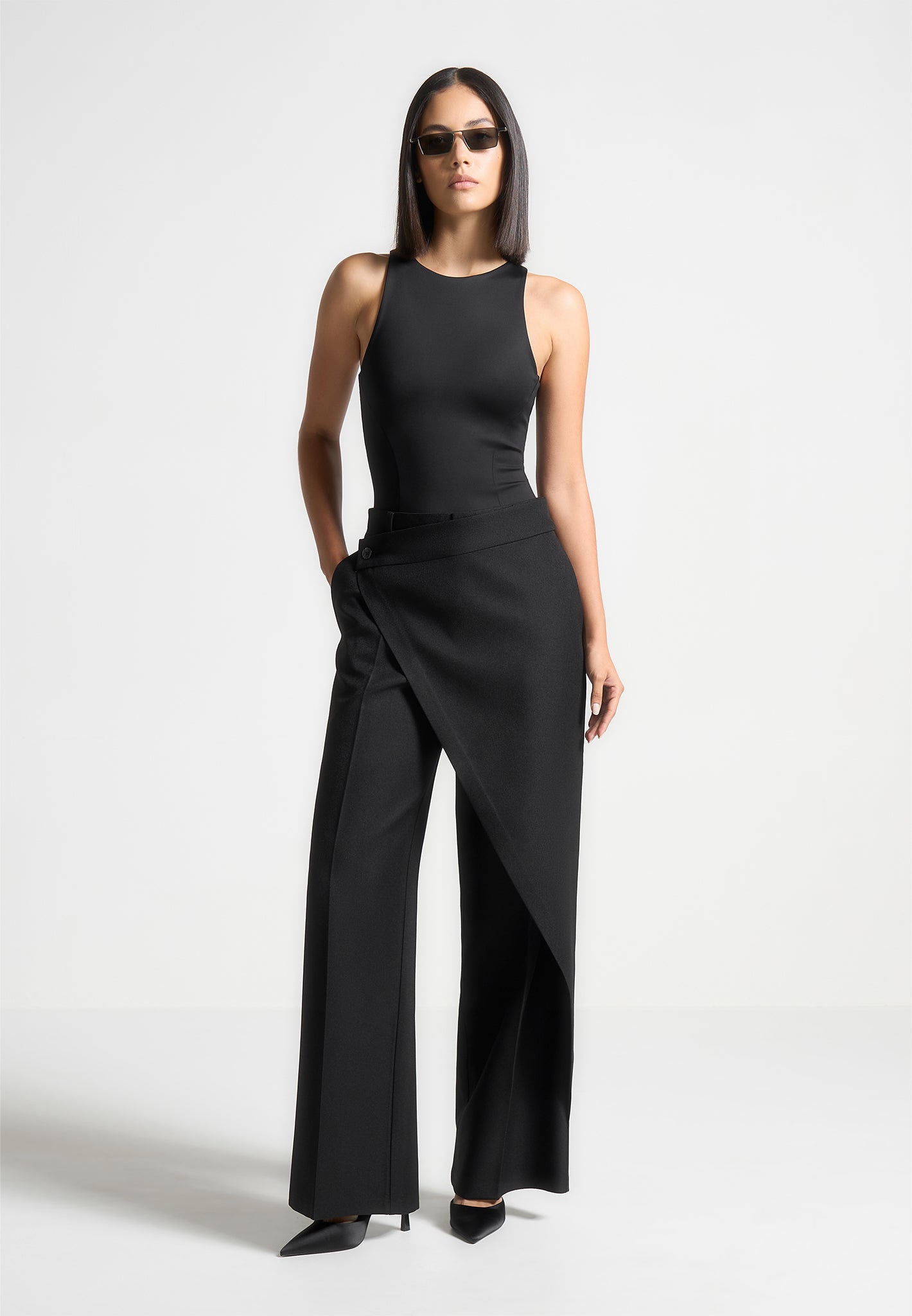 Our Éternelle Racer Neck Bodysuit is designed with contour lines and a racer neck silhouette. Crafted from lightweight and breathable fabric, this item is the perfect staple piece.