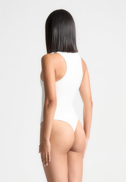 Our Éternelle Racer Neck Bodysuit is designed with contour lines and a racer neck silhouette. Crafted from lightweight and breathable fabric, this item is the perfect staple piece.