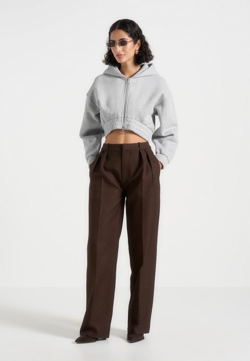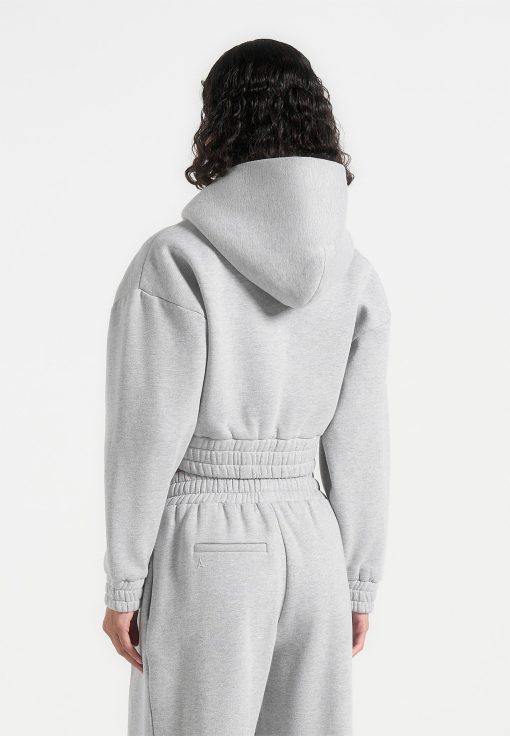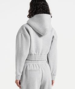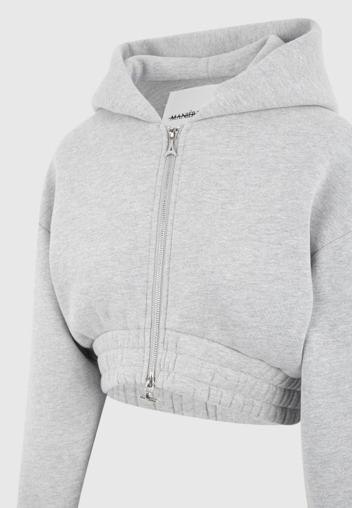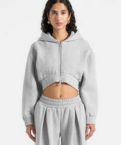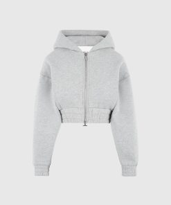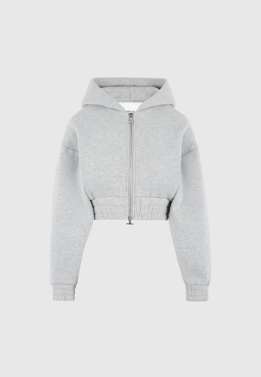 This cropped zip hoodie redefines casual wear with a structured twist. Cut from soft brushed cotton fleece, it features a high cinched waistband that sculpts the waist while creating volume through the body and sleeves. The exaggerated hood and dropped shoulders add relaxed contrast to the fitted hem, making it the perfect balance of comfort and contour.