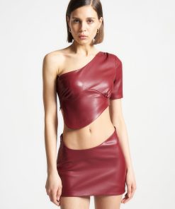 This curved waist mini skirt is made with high-quality vegan leather and features a curved waistline and side zip fastening. The feminine design adds a touch of sophistication to any outfit.