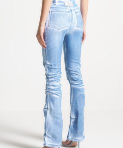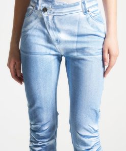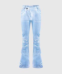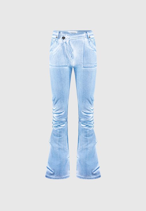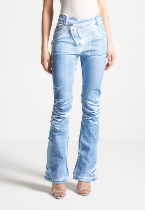 These Oil Print Tacked Fit and Flare Jeans in White and Blue offer a unique individual print on every pair, with precise tacked detailing and an asymmetric waistband adding a flattering touch. The contrasting colours add a modern element, making these jeans a must-have statement piece for any wardrobe.