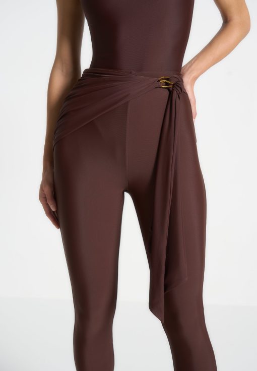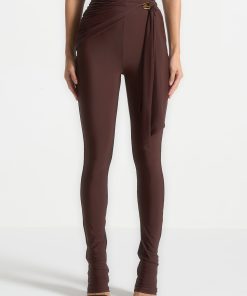 Crafted with precision, these leggings offer a flattering fit with a gathered belt and elegant hardware detailing. Enjoy a comfortable yet chic look that can easily transition from day to night.