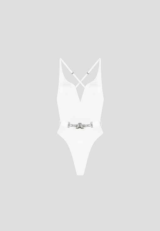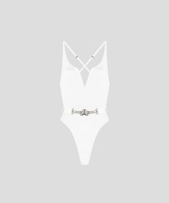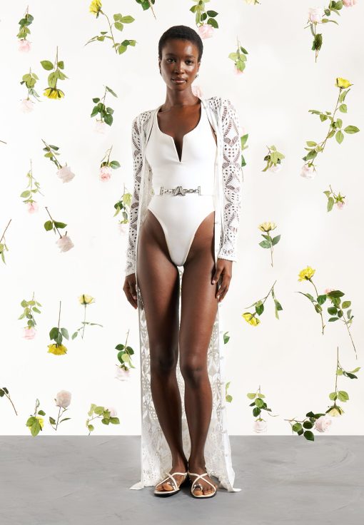 The Eiffel Belted Swimsuit is a must-have for any swimwear collection. Made with adjustable straps and a plunging neckline, this swimsuit offers a comfortable and flattering fit. The detachable belt adds a touch of chic style, making you stand out in any pool or beach setting.