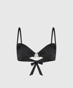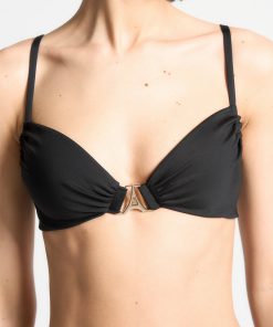 Expertly designed with adjustable straps and ruched detailing, the Eiffel Ruched Bikini Top is a must-have for any beach day. Featuring elegant Gold Manière De Voir hardware, this top offers both style and functionality. Perfect for a confident, effortless look.