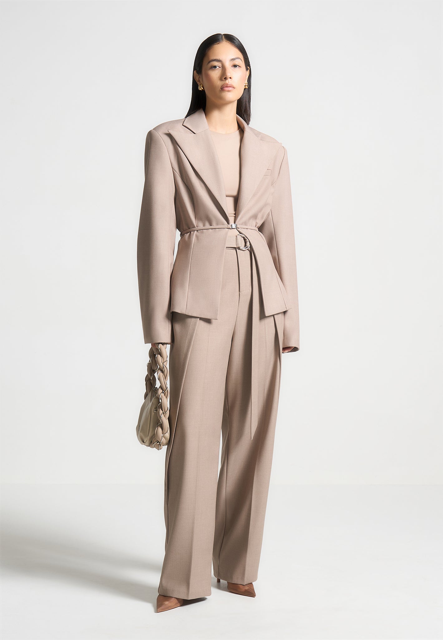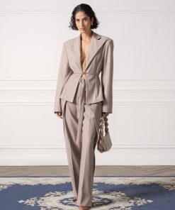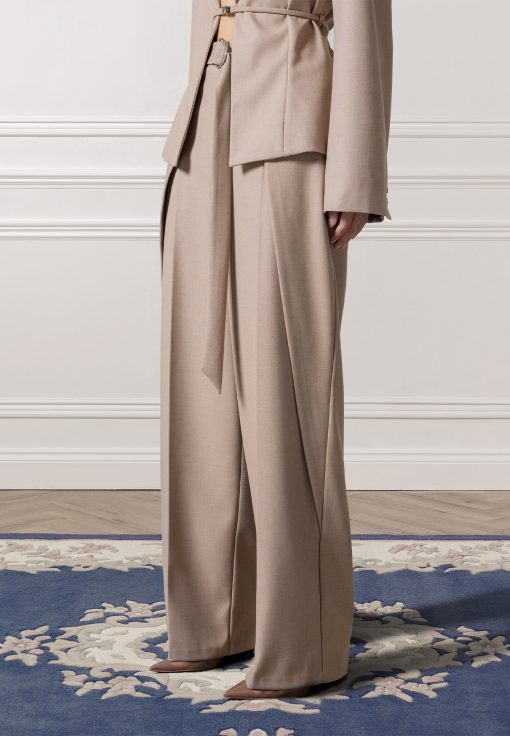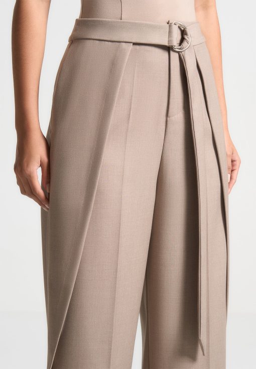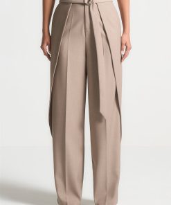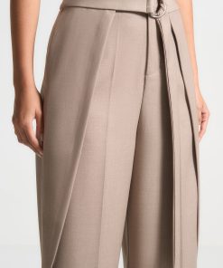 Manière De Voir Women’s Foldover Tailored Trousers With D-ring Belt – Taupe