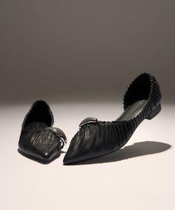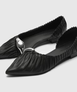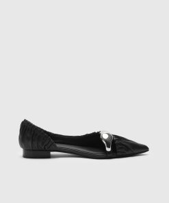 Manière De Voir Women’s Footwear Céleste – Leather Ballet Flats With Hardware – Black