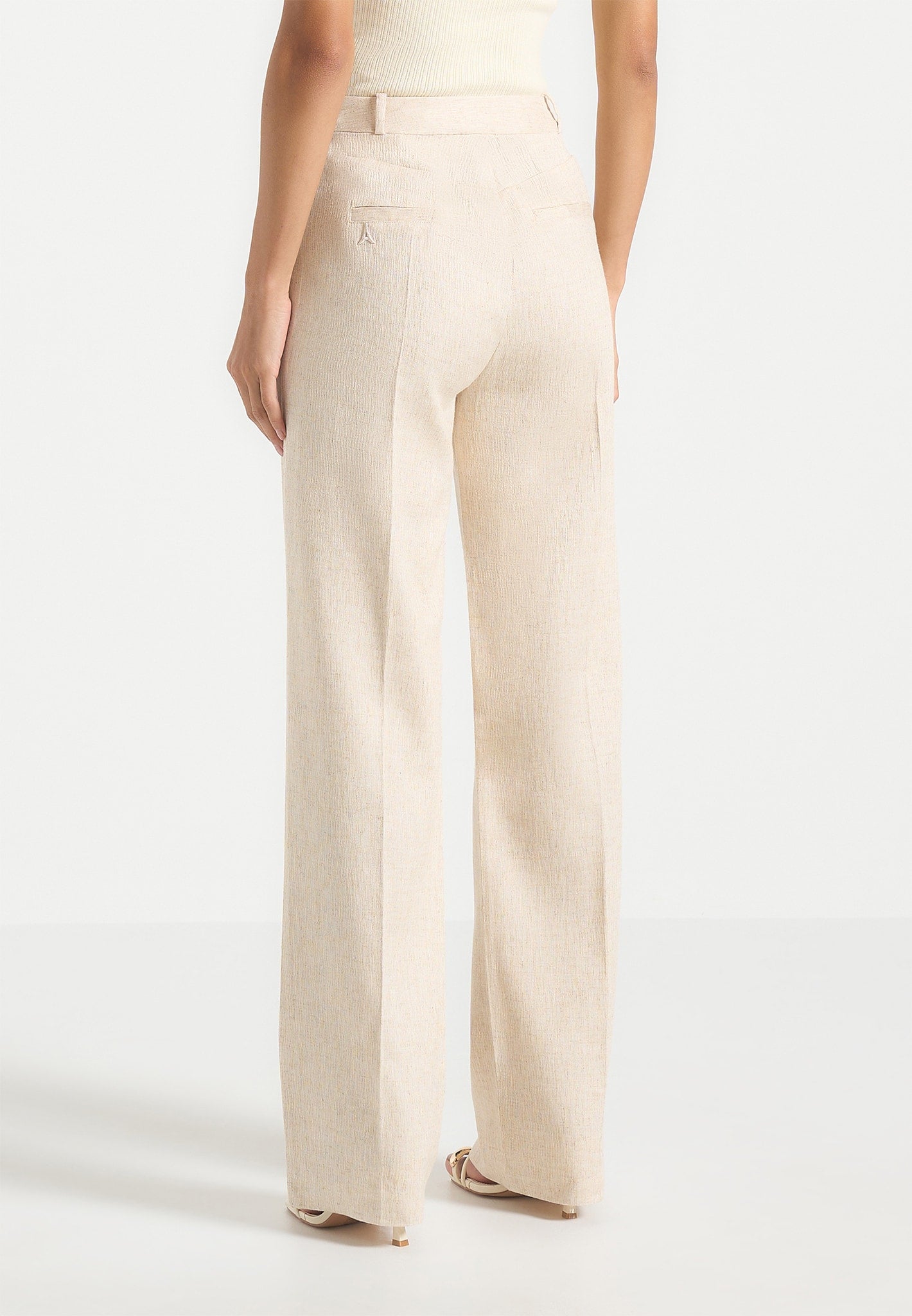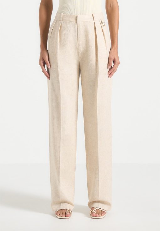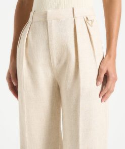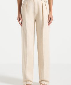 Expertly crafted from quality linen, these twin pleat trousers feature delicate pleat detailing for a sophisticated touch. The soft texture of the fabric adds comfort to style. Perfect for many occasions, add to your wardrobe with these dual pleat trousers in a natural colour.