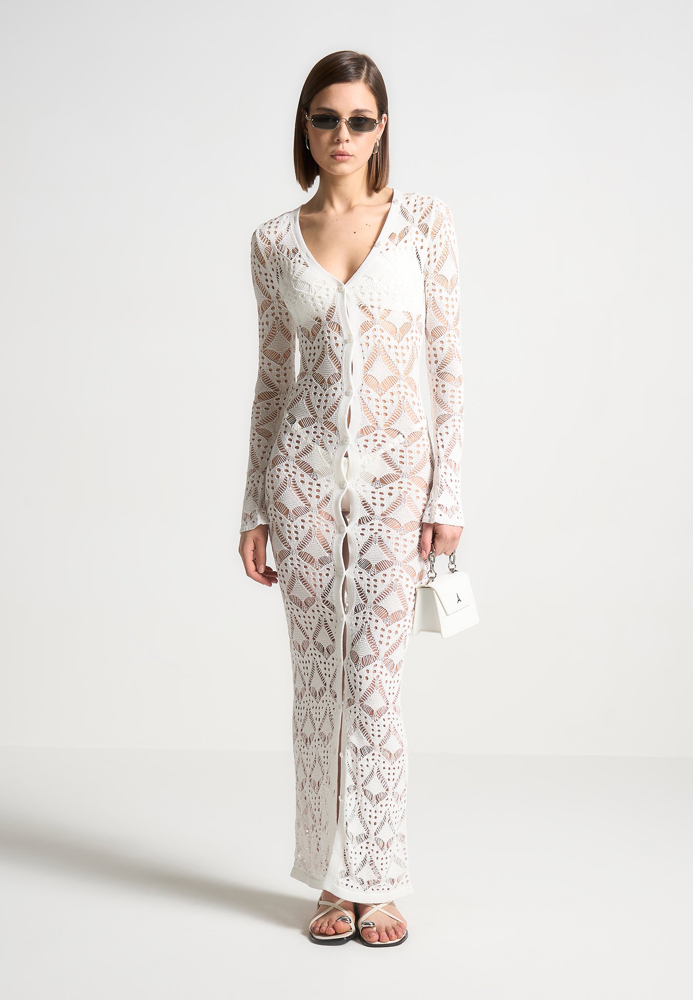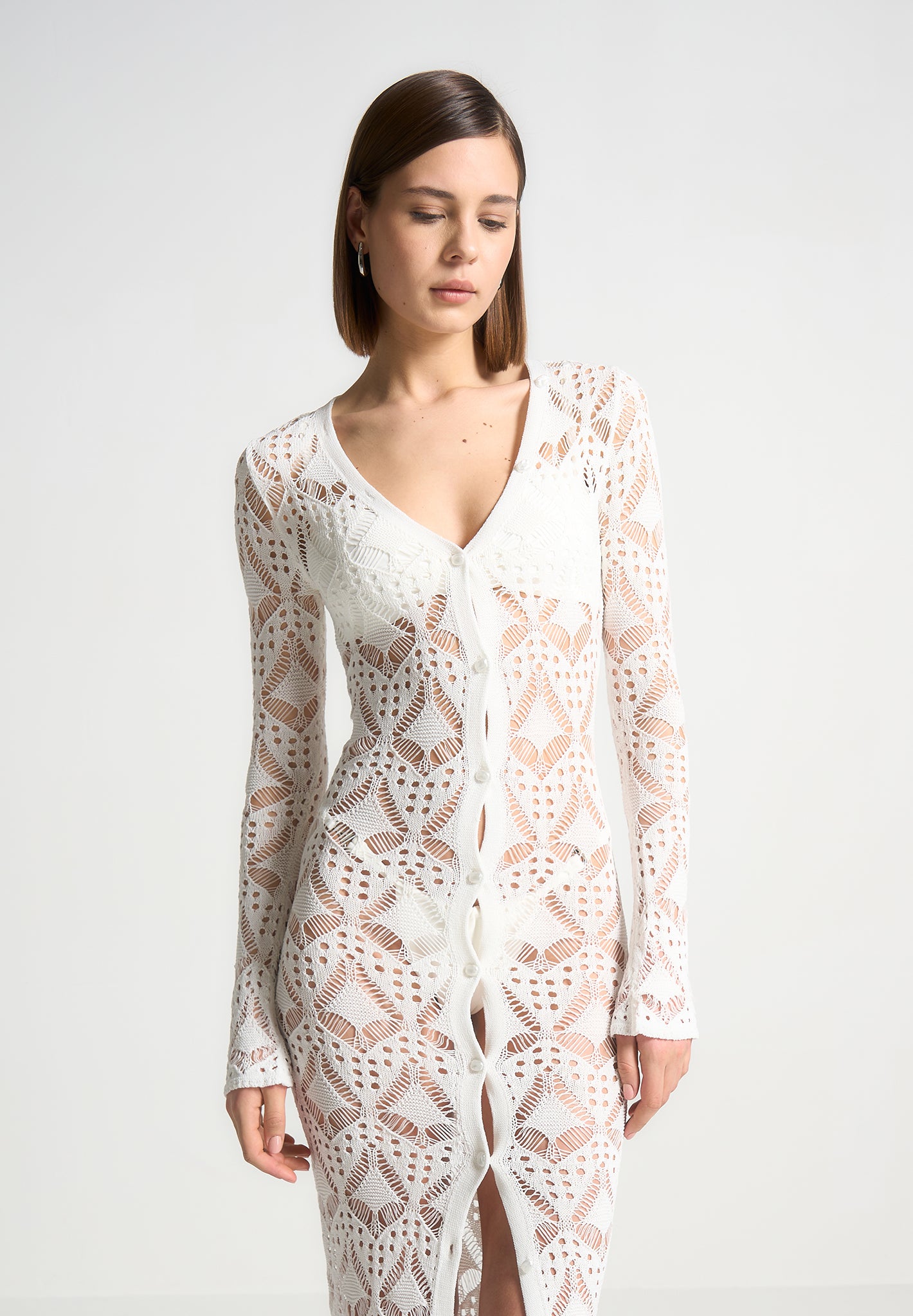 This Knit Longline Cover Up Cardigan is lightweight and perfect for a day at the beach. Featuring a button down design, it provides the perfect blend of style and comfort for your beach outings. Make a statement with this longline cover up.