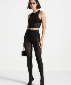 Expertly crafted with knitted contour detailing, this top is the perfect statement piece for any wardrobe. The intricate knit provides a flattering and comfortable fit, while the sleek design adds a touch of sophistication. Elevate your look with this versatile top.
