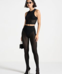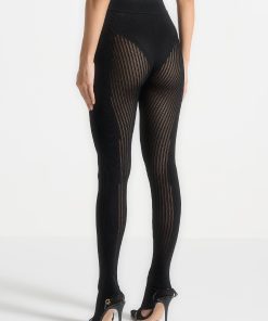 Expertly crafted with a contour knit design, these black footsie leggings flatter your figure for a sophisticated look. The unique footsie feature adds an extra touch of uniqueness to your outfit. Enjoy comfort and style in one with these Knitted Contour Footsie Leggings.