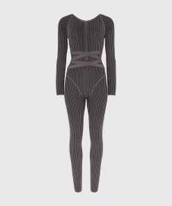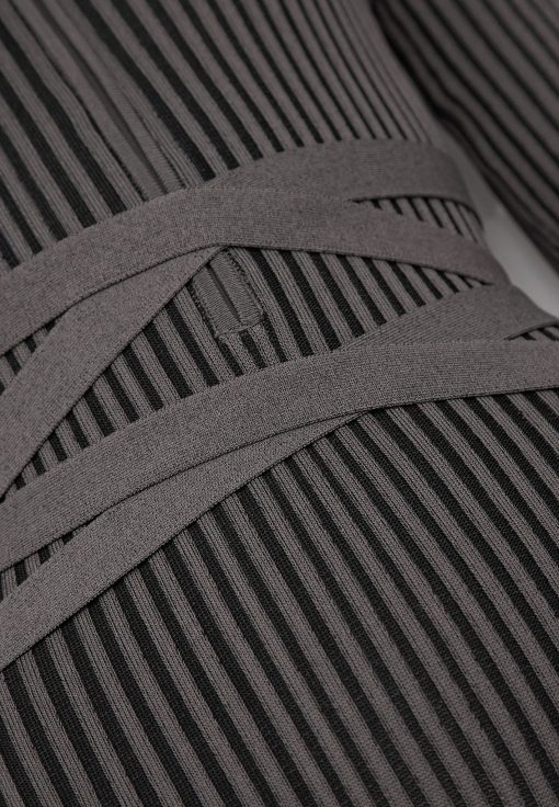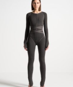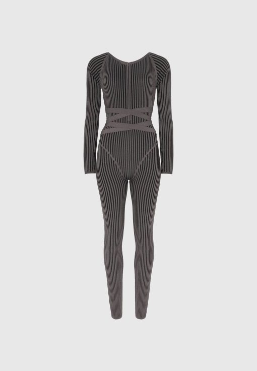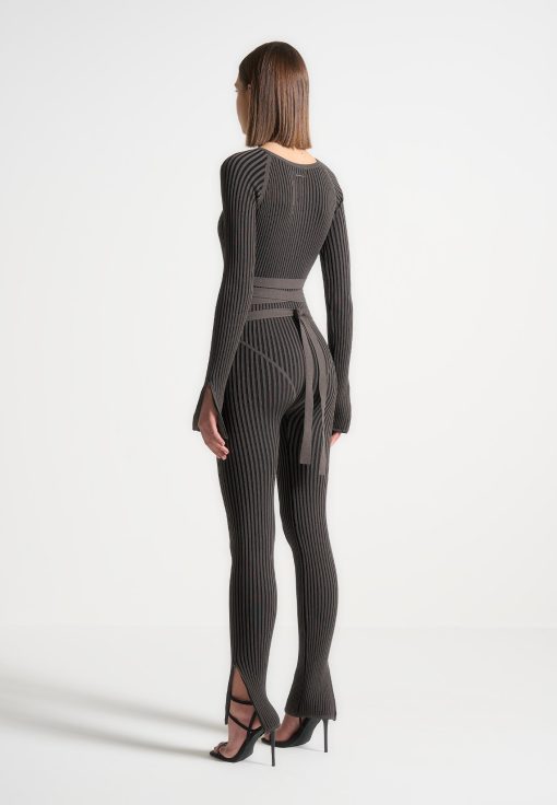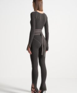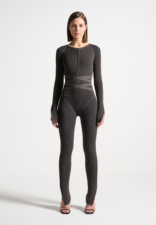 Grey/Black Knitted Two Tone Jumpsuit with Belt