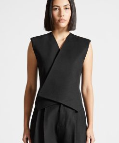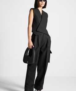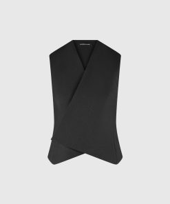 This black waistcoat features a wrap silhouette with concealed buttons for a tailored, sleek look. Perfect for office-wear or special occasions, this Tailored Wrap Waistcoat pairs well with any outfit to add a tailored touch.