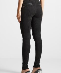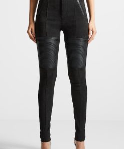 Look your best with the Vegan Leather and Suede Ribbed Leggings. These classic leggings feature ribbed knee panels, creating a timeless design suitable for any occasion, from day to night. Achieve a timeless look and feel confident all day.