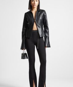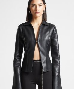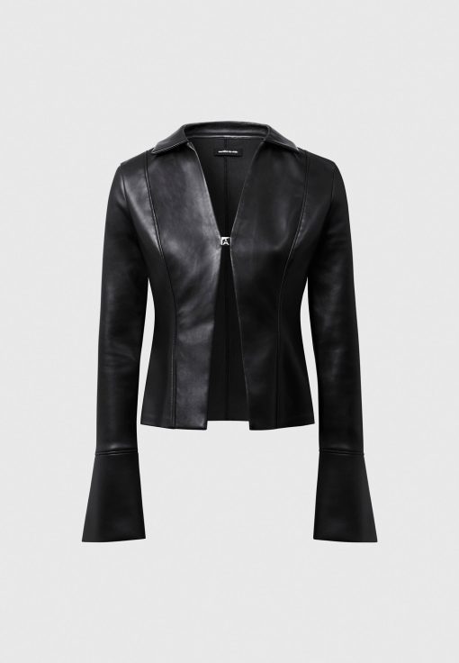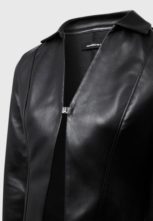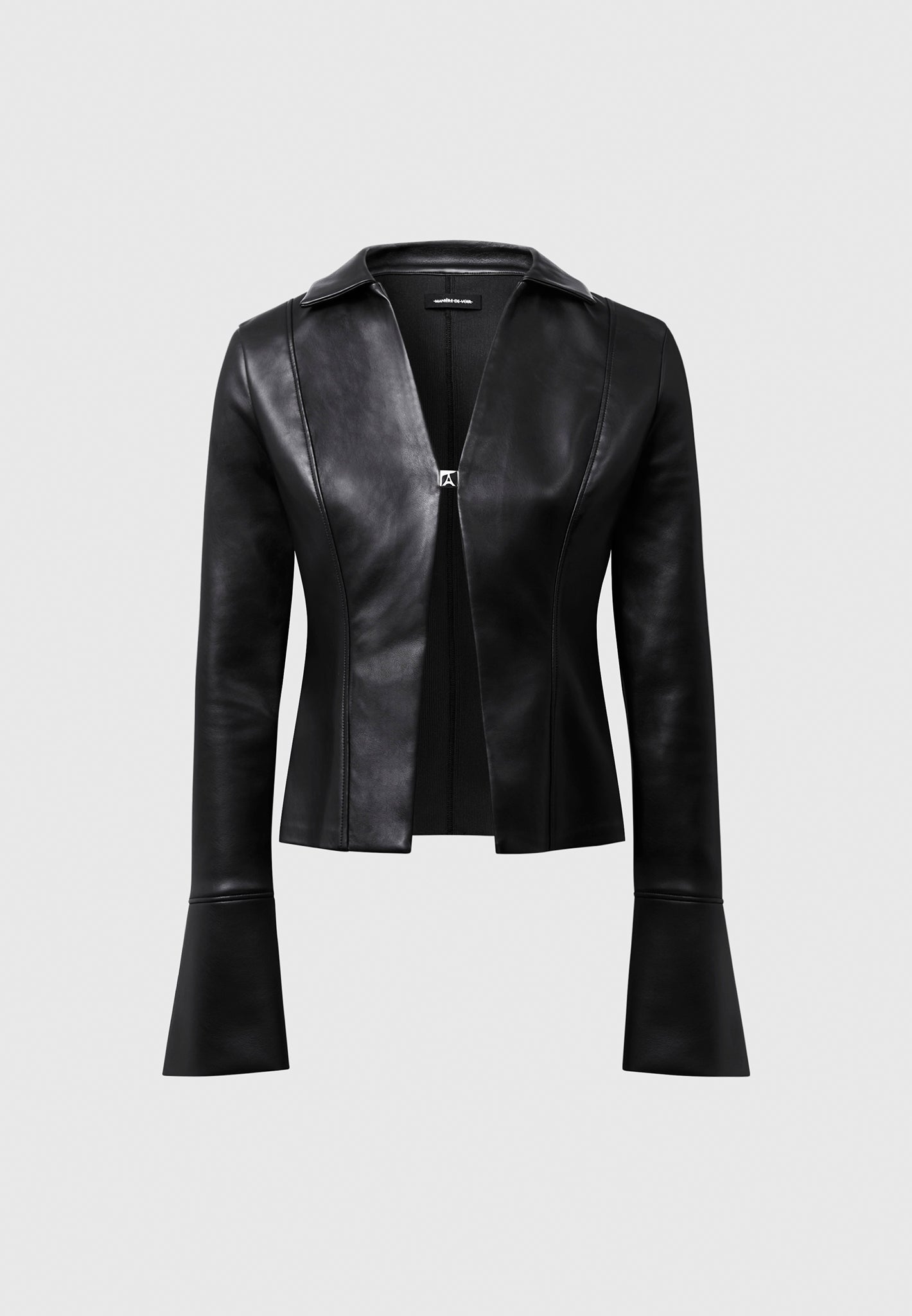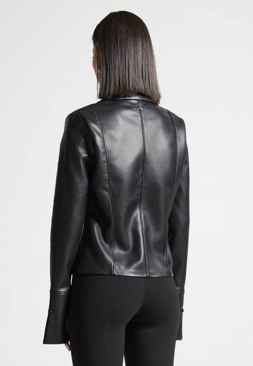 This stylish black vegan leather shirt is designed with a tailored fit and deep cuffs. Perfect for a night out – you’ll look and feel your best.