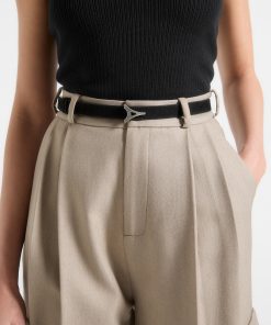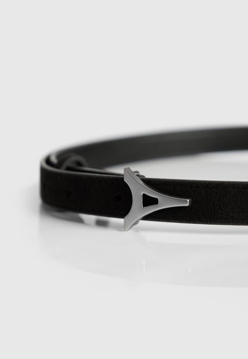 Manière De Voir Women’s Leonie – Eiffel Slim Suede Belt – Black/silver | Black & Silver