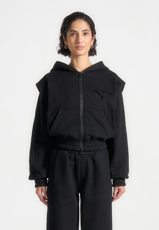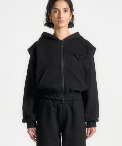 This hoodie offers a relaxed and flattering fit. Its unique design features a tailored structure and a detailed zip through the front. Keep warm in style with this versatile and comfortable hoodie.