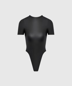 This classic Matte Vegan Leather Tee Bodysuit will effortlessly take you from day to night in style. Its sleek design is sure to make a statement without compromising on comfort. Create your perfect look with this must-have piece.