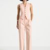 These tailored trousers feature a straight leg design with front pleat detailing, providing a figure-flattering silhouette. The contrast piping adds a touch of sophistication, making these trousers an elegant to addition to any wardrobe.