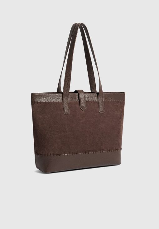 Manière De Voir Women’s Nicolas – Suede & Pebbled Leather Whipstitch Tote Bag – Brown | Brown