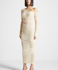 Manière De Voir Women’s Off Shoulder Knitted Maxi Dress – Beige | Beige