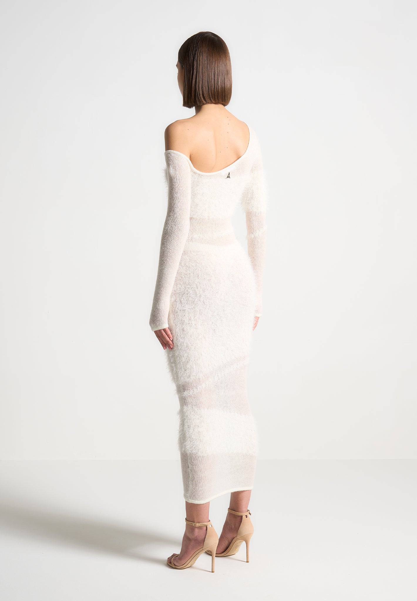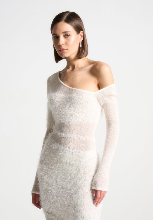 This Off Shoulder Knitted Maxi Dress is crafted from a soft and comfortable material that hugs your curves, creating a flattering fit. Perfect for any occasion, this versatile dress is sure to impress.