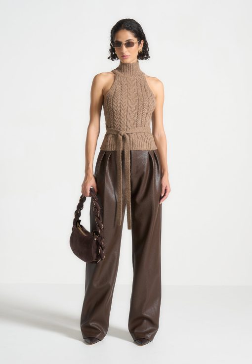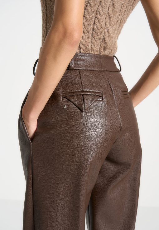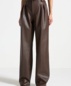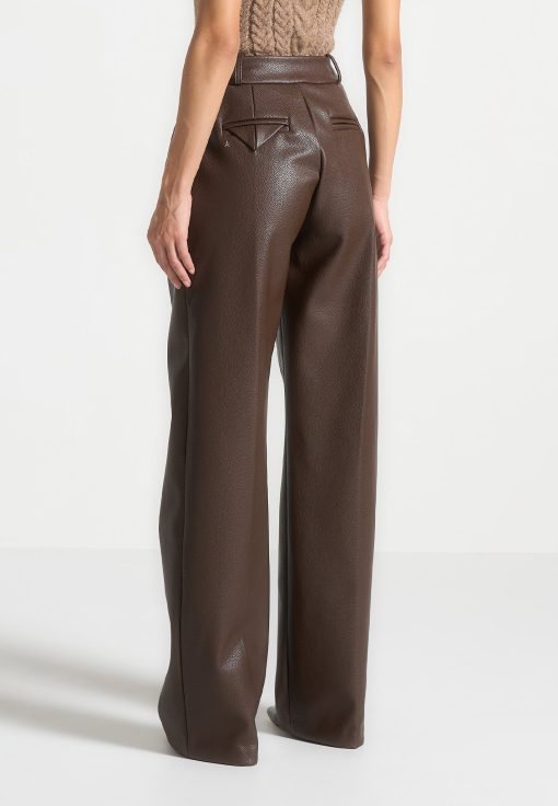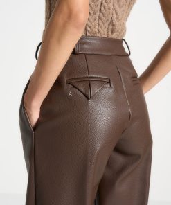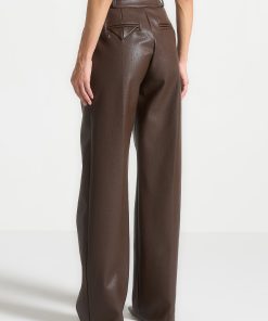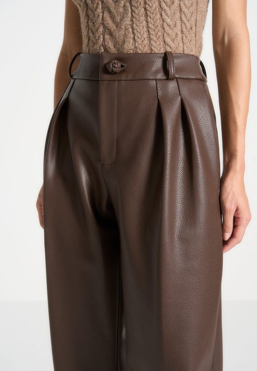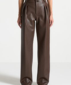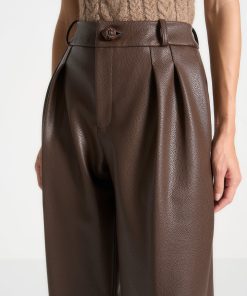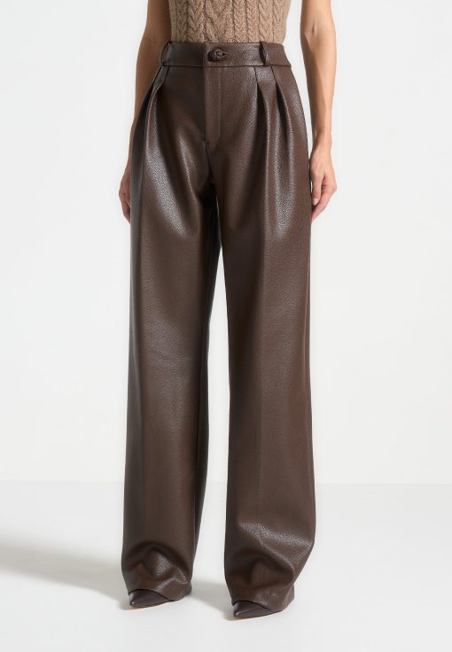 Manière De Voir Women’s Pebbled Leather Pleated Stacked Trousers – Brown | Brown