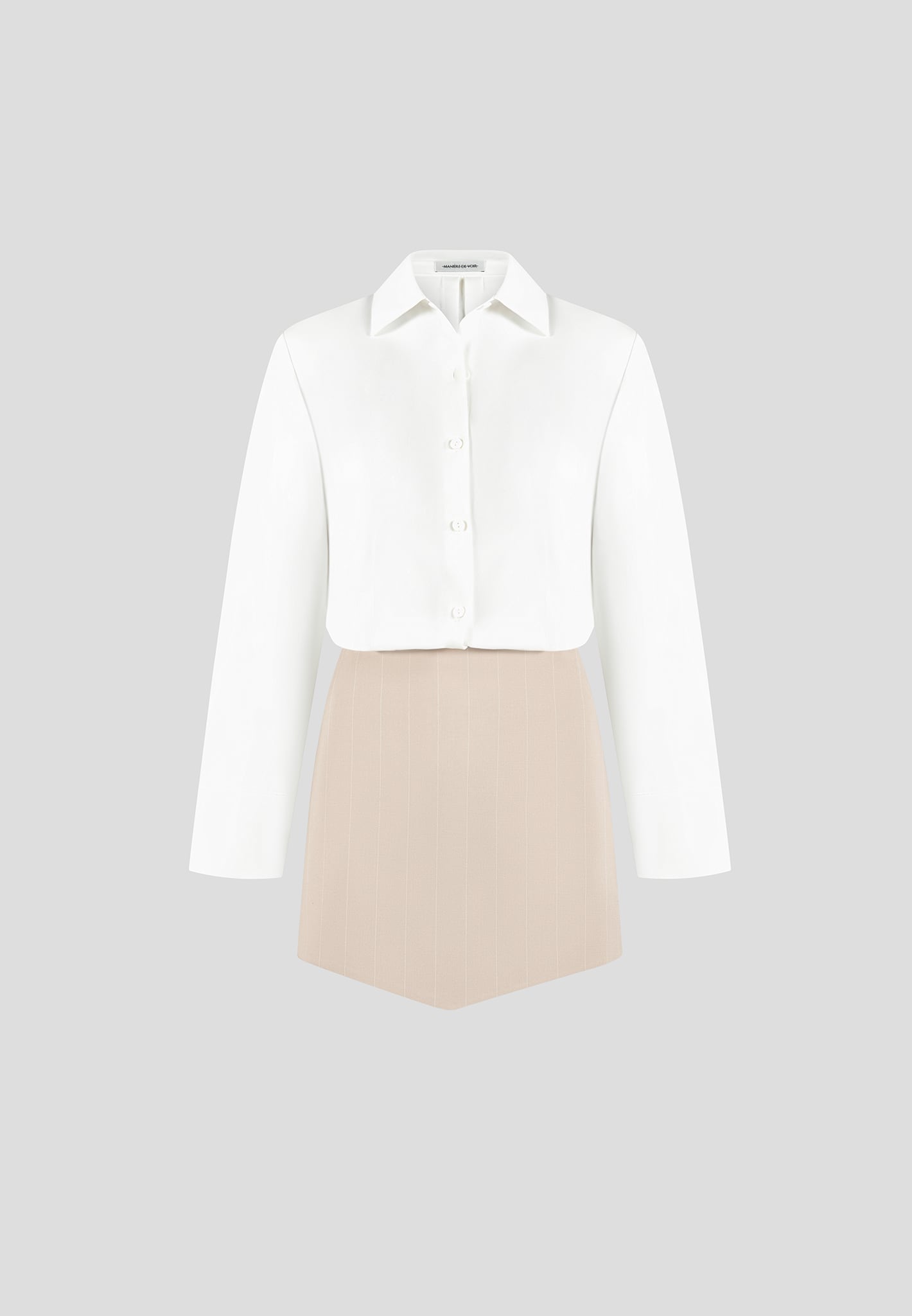 This classic Pinstripe Skirt Shirt Dress is a perfect addition to any wardrobe. The flattering design and multi-occasion appeal make this dress suitable for any occasion. The timeless pinstripe creates a look that is both sophisticated and versatile.