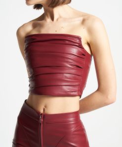 This Pleated Corset Top offers a structured design with flattering fit. Constructed from premium vegan leather, this top will give you a comfortable and feminine look.