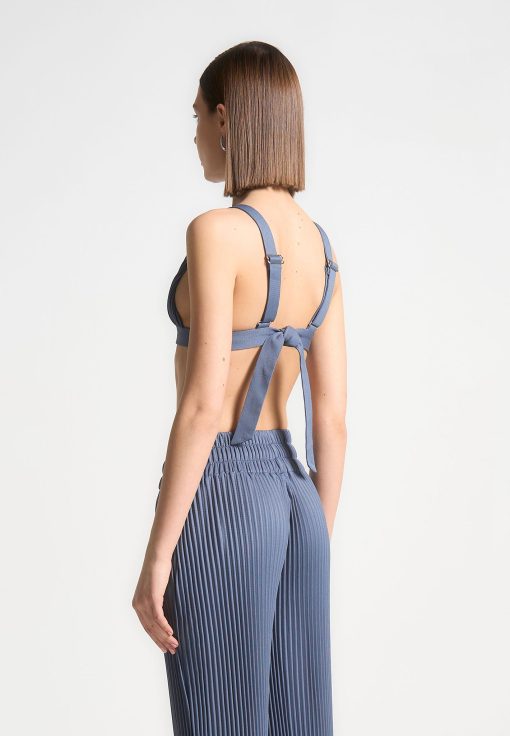 This Pleated Eiffel Bralette features an adjustable tie back and straps for a comfortable and customisable fit. Its lightweight design makes it easy to wear all day, while the pleated detailing offers a flattering look. Perfect for many occasions, this bralette is a must-have addition to your wardrobe.