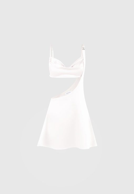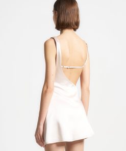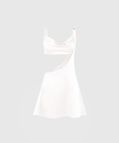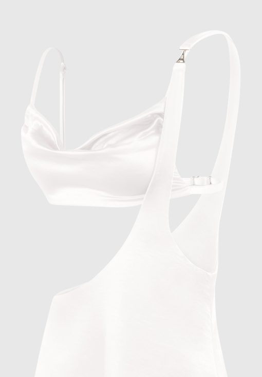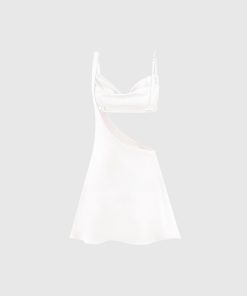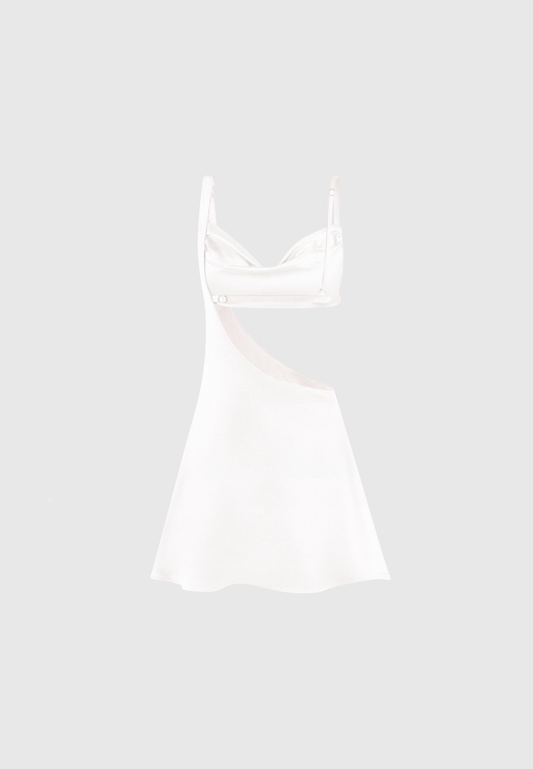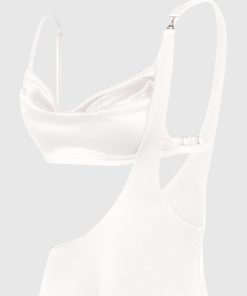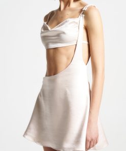 Make a statement in this Satin Bralette Fluted Mini Dress. The drape front bralette and curved waistline give a flattering fit, while the skirt and adjustable straps offer movement and comfort. Perfect for a night out or special occasion, this dress will have you feeling confident and feminine.