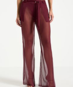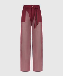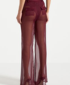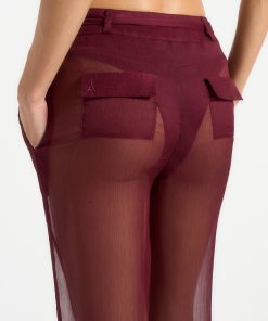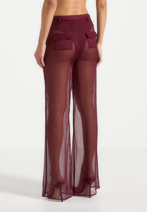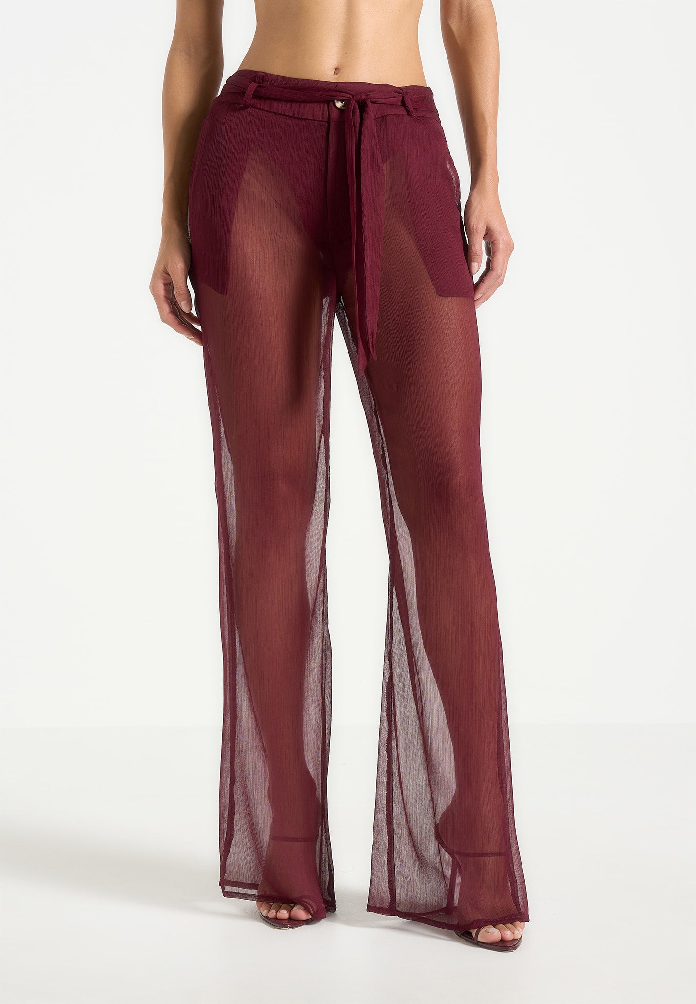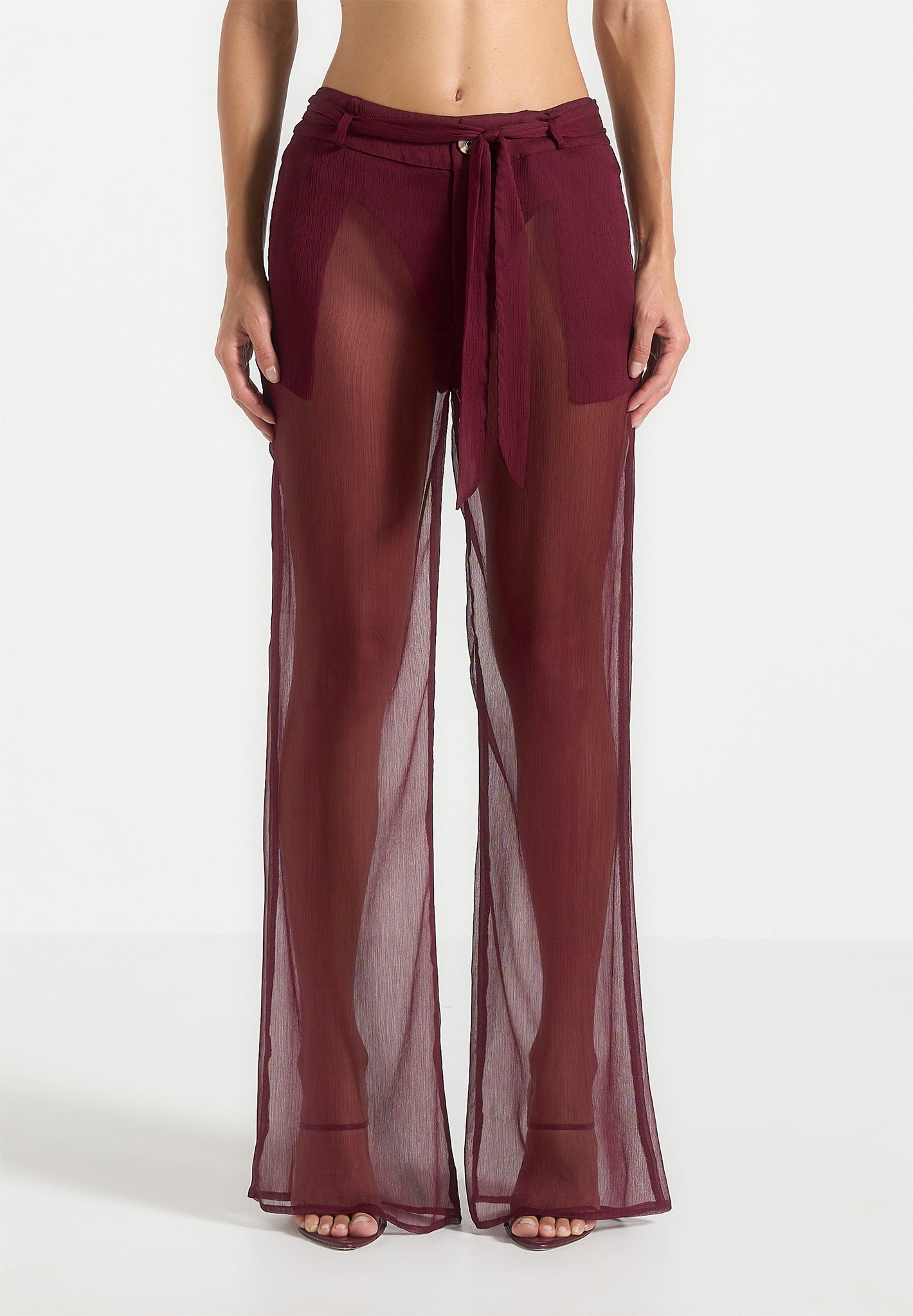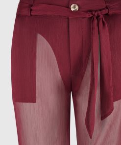These sheer trousers are perfect for a sophisticated and elegant look. The lightweight fabric offers comfort and breathability, while the detachable belt adds versatility. Featuring an internal knicker, these trousers provide both coverage and style.