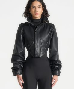 Manière De Voir Women’s Solange – Leather Tacked Sleeve Corset Jacket – Black | Black