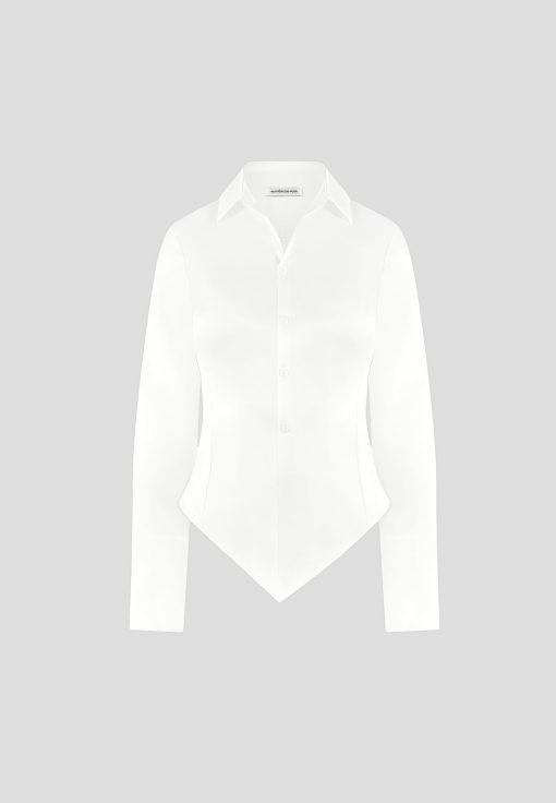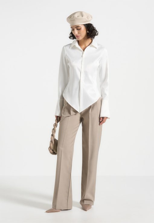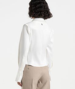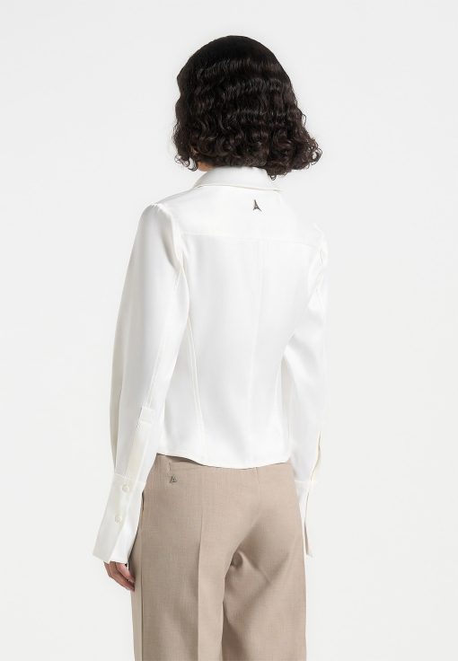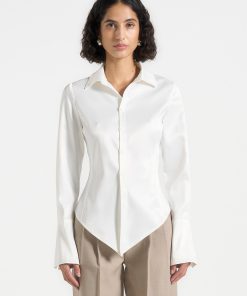 This Angled Satin Shirt is crafted from a soft touch fabric and tailored for a flattering fit. This timeless design offers the wearer superior comfort and a stylish silhouette. Perfect for special occasions or casual wear.
