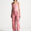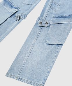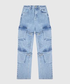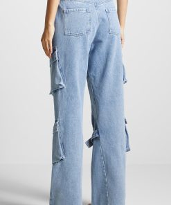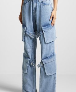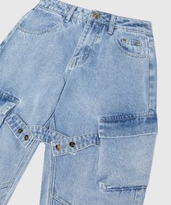 Manière De Voir Women’s Strap Detail Cargo Jeans – Mid Blue