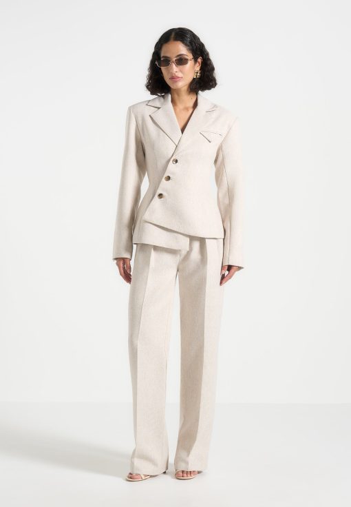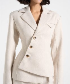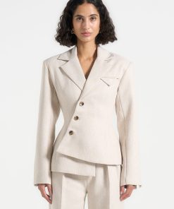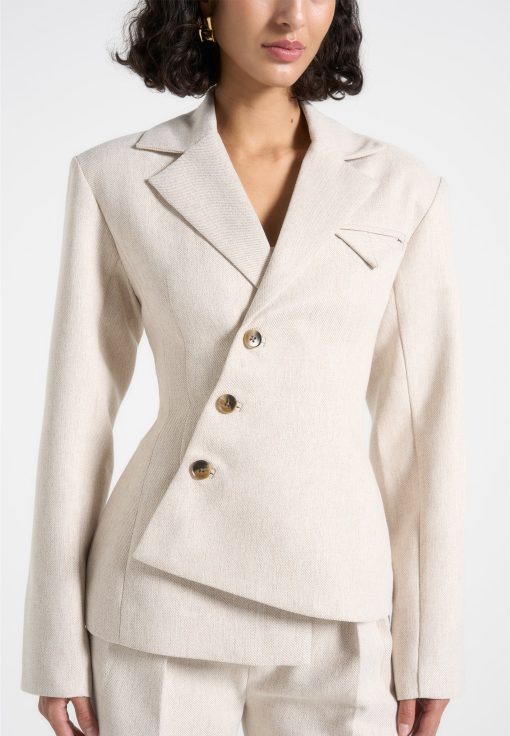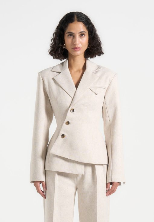 Manière De Voir Women’s Thalia – Tailored Asymmetric Double Breasted Blazer – Light Beige | Light Beige